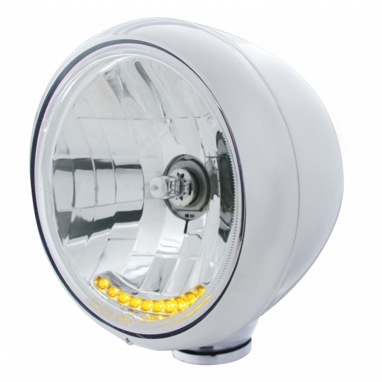 Chrome “GUIDE” Headlight w/ No Turn Signal – 10 Amber LED 7″ Cystal H4 Bulb